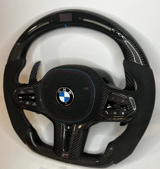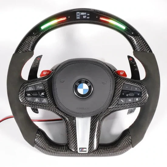Le volant BMW Série G20 (2019-2023) personnalisé est la solution idéale pour apporter une touche de classe et d'individualité à ta voiture. Fabriqué avec des matériaux de haute qualité, ce volant custom offre une finition lisse et une sensation agréable au toucher.