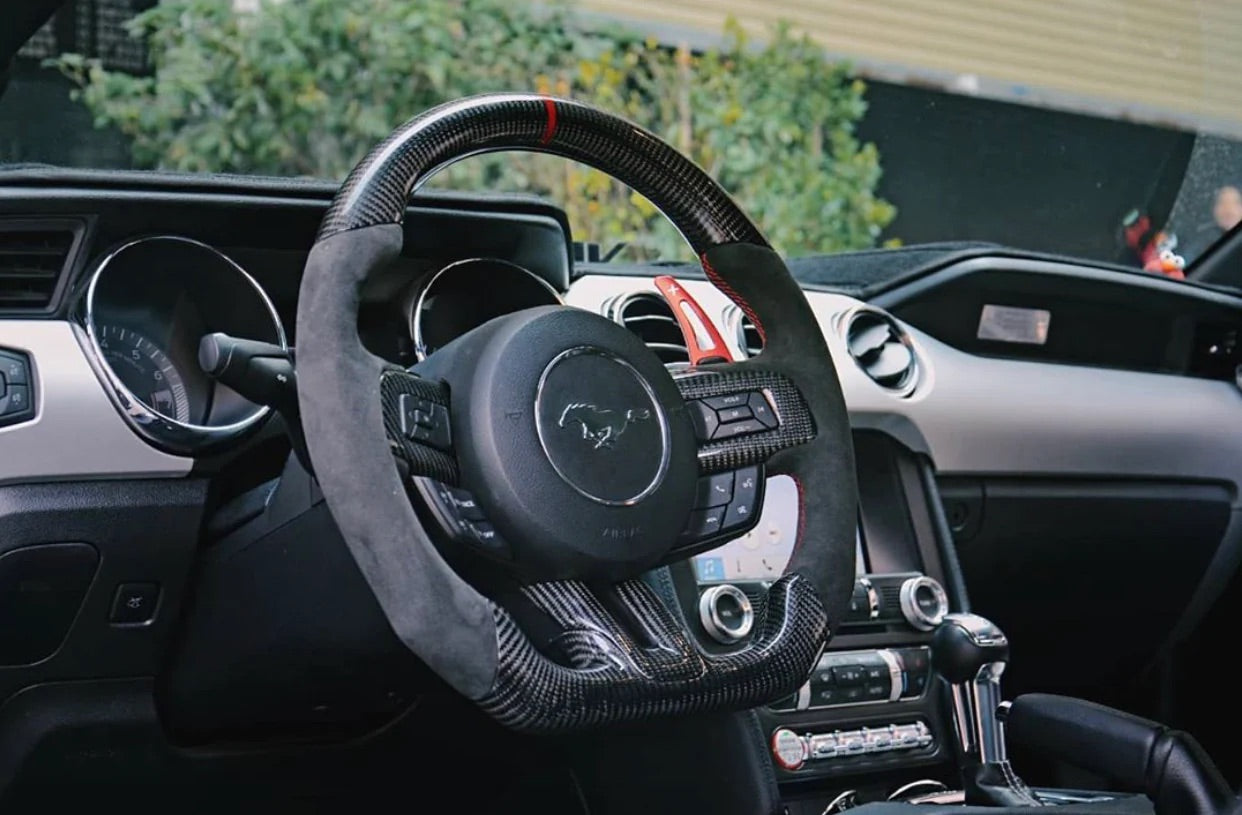 Personnalise ton expérience de conduite grâce à notre tout nouveau volant en fibre de carbone pour les pilotes de Mustang !